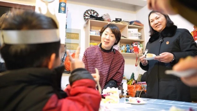 2026年2月11日,江苏小年。在郭清位于江苏省苏州市工业园区的家里,淮安市清江浦区人民法院的几位法官及法院工作人员正在为“法院宝宝”冬冬庆祝五岁生日。歌声清脆,烛火暖黄。
