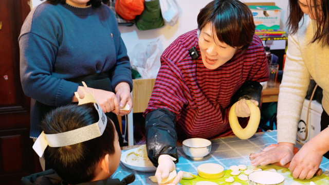 “淮安人称饺子为‘弯弯顺’,来年一切顺顺利利!”张树维担起擀面皮的重任,和大家一起为这个重生的小家寄予最真挚的祝福。