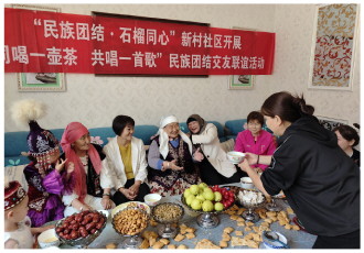 图为阿克塞县综治中心培育的调解品牌“真心好大姐”调解室在新村社区开展“同喝一壶茶 共唱一首歌”联谊活动。