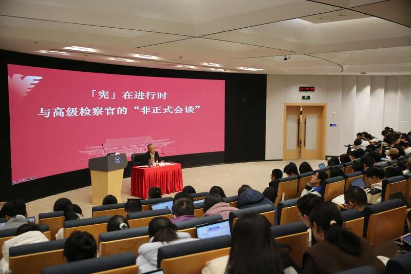 第十二个国家宪法日当天,浙江省人民检察院原检委会专职委员、一级高级检察官,浙江省法学会未成年人刑事司法研究会会长沈雪中也来到课堂上,讲述法律的特征、宪法的重要地位、检察院的基本职能及大学生群体中常见的犯罪案例等话题。